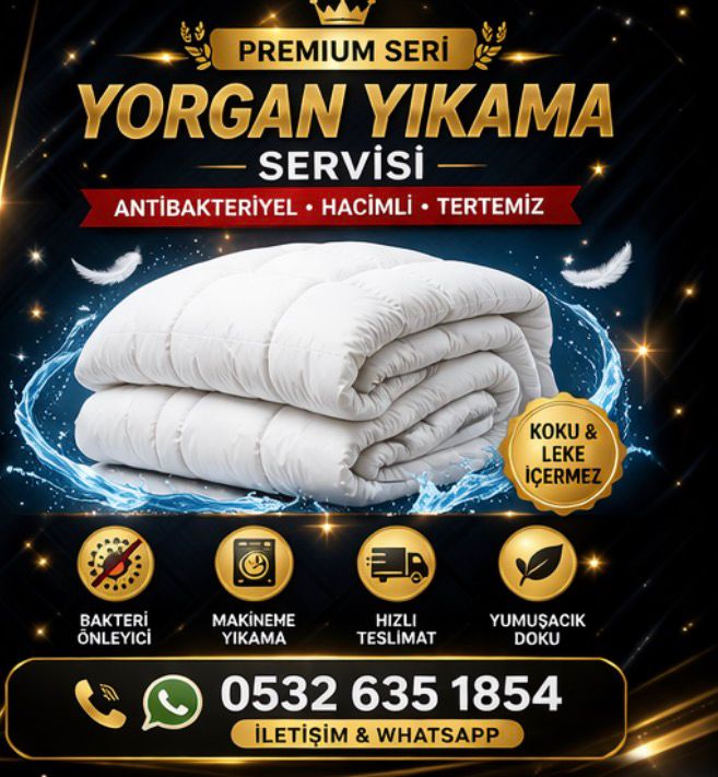 Antibakteriyel yorgan yıkama hizmeti, yorganların derinlemesine temizlenmesini, bakteri ve mikroplardan arındırılmasını sağlayan profesyonel bir temizlik sürecidir. Özel deterjanlar ve hijyenik yıkama programları kullanılarak, yorganların dokusu korunur ve uzun ömürlü kullanım desteklenir.